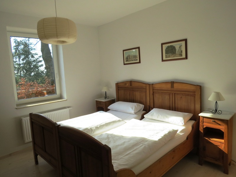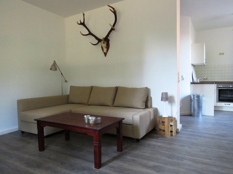 Die große Wohnung „Fuchsberg“ (2 – 4 Pers.) im EG umfasst 1 Wohnraum mit Schlafsofa, 1 Schlafraum mit 2 Einzelbetten, Duschbad, Gäste-WC, offene Einbauküche mit Essbereich, direkter Zugang zum Garten mit Terrasse.