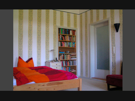 Die Wohnung hat zwei hintereinanderliegende Schlafzimmer, deren große Fenster alle nach Westen zeigen: Das erste ist 25qm groß und mit einem Doppelbett ausgestattet, das zweite Zimmer (15qm) hat zwei Einzelbetten und ein Kinderbett.