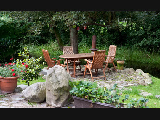 Das Grundstück liegt direkt an der Schaale. Dort können Sie auch draußen frühstücken oder abends gemütlich grillen.