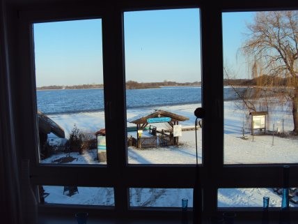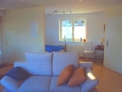 Diese kleinere unserer beiden Ferienwohnungen hat ebenfalls einen direkten Seeblick. Sie verfügt über einen 45qm großen Wohnraum mit offener Küche und einem abgetrennten Schlafzimmer für zwei Personen mit Duschbad.