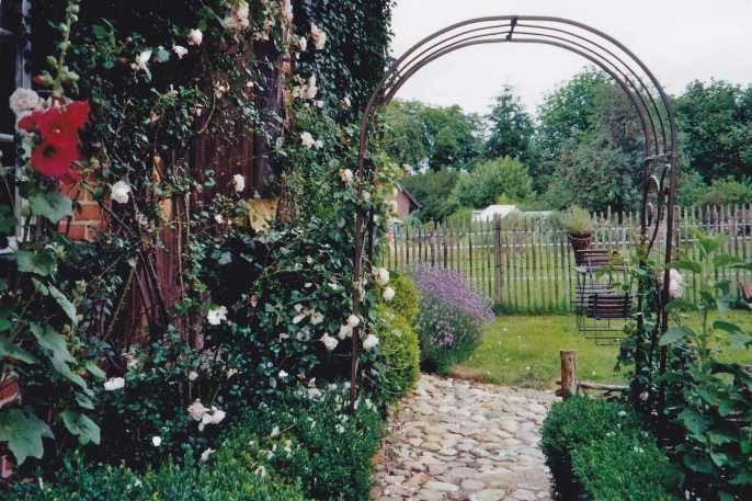 Auf der Südseite befindet sich eine Grünterasse umgeben von Rosen und
