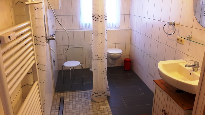 Ein Duschbad mit WC sowie ein Garderobenraum sind vorhanden.