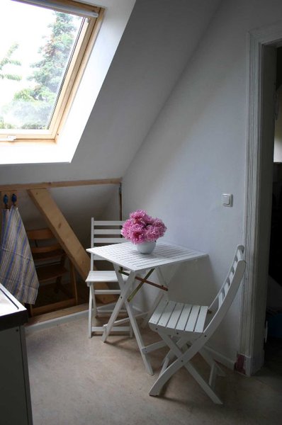 Die Ferienwohnung bietet Platz für 2 - 4 Personen und Baby (Reisebett und Hochstuhl). Sie liegt im ersten Stock des Hauses unter dem Dach und ist rund 50 qm groß. Sie umfasst ein Wohn-Schlafzimmer, ein Schlafzimmer, ein Bad und eine Küche. Die Wohnung ist an die Heizung des Hauses angeschlossen. Der Ökostrom kommt von „Naturenergie+“.