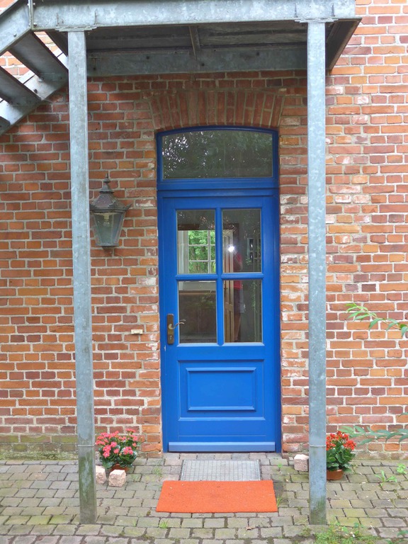 In Süd-Ost-Lage fällt der Blick durch große Sprossenfenster auf wilde Streuobstwiesen. In Ost-West-Richtung rahmt ein märchenhafter Auenwald, der durch das Flüsschen Schilde begrenzt wird, das Hofareal ein.