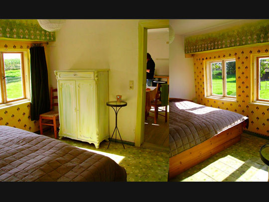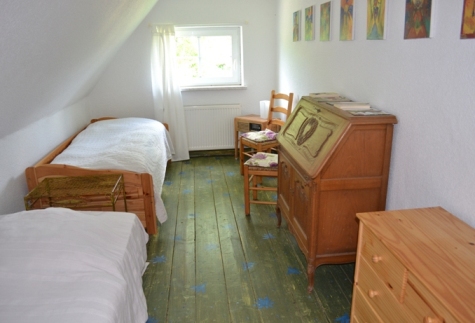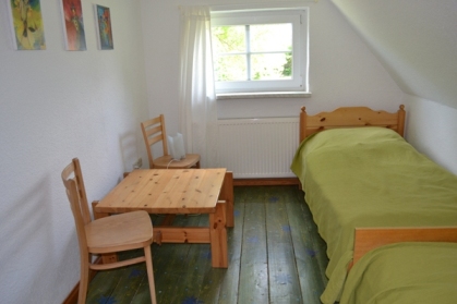 Es gibt einen Schlafraum mit zwei Betten ( können aneinander gestellt werden),