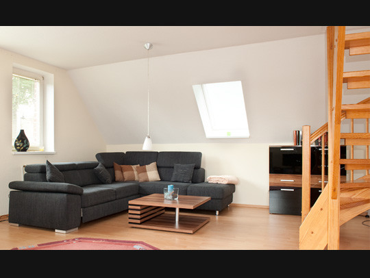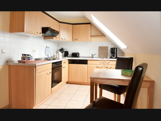 Die Wohnung liegt über der Fischerei. Sie ist etwa 55qm groß und für 2 bis 4 Personen geeignet. Es gibt eine gut ausgestattete Küche, ein Duschbad und eine große Wohnstube mit Eßtisch und ausziehbarer Schlafcouch. Das Schlafzimmer mit Doppelbett befindet sich im Spitzboden. Darüber hinaus gibt es die Möglichkeit draußen zu sitzen und zu grillen.
